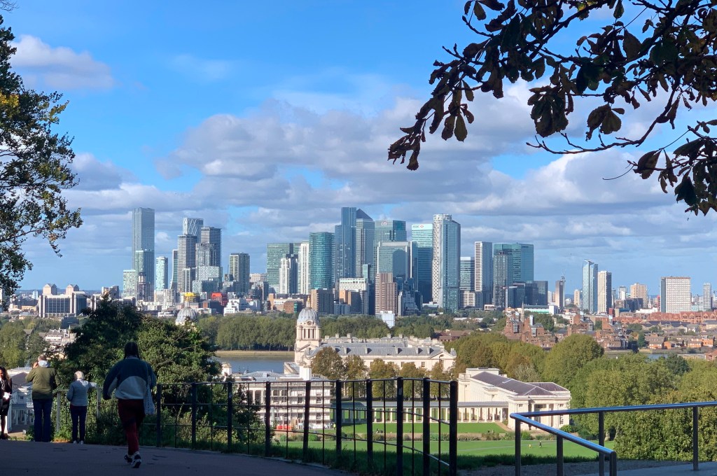 গ্রীনিচে একটা   hilltop viewing point আছে, যেখানে দাঁড়ালে দূরে নীচে  দেখা যায় লন্ডন শহরের স্কাইলাইন,  এঁকে বেঁকে বয়ে যাওয়া টেম্‌স্‌ নদী আর তার ওপর দিয়ে চলে যাওয়া Emirates রোপওয়ে আর তার পাশে O2 Mall এর বিশাল তাঁবুর মত সাদা hemispheric ছাউনী।