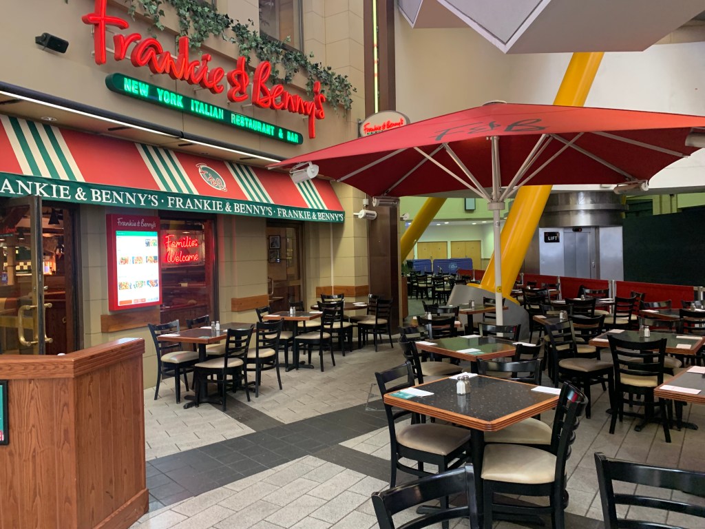 কেনাকাটা সারা হলে মলের ভিতরে একটা ইটালিয়ায়ন রেস্টুরেন্ট – Frankie and Benny’s- এ খেতে ঢুকলাম আমরা। সেটা ছিল ২০২১ সাল, কোভিড এর জন্যে দোকান সব খোলা হলেও মল বেশ ফাঁকা, রেস্টুরেন্টও খালি।