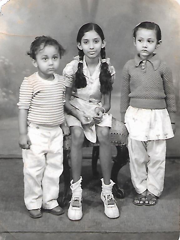 দ্বিতীয় ছবিতে দুই জ্যাঠতুতো দিদির সাথে আমি। লক্ষ্য করলে দেখবে তিনজনে তিন দিকে তাকিয়ে আছি। মনে হয় আমাদের সামনে আমাদের তিন মা আমাদের direction দিচ্ছেন, সোজা হয়ে বসো, হাসো, সামনের দিকে তাকাও, ইত্যাদি।