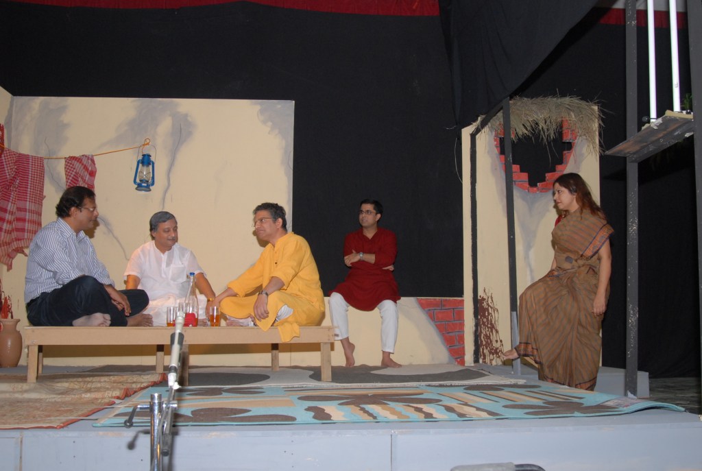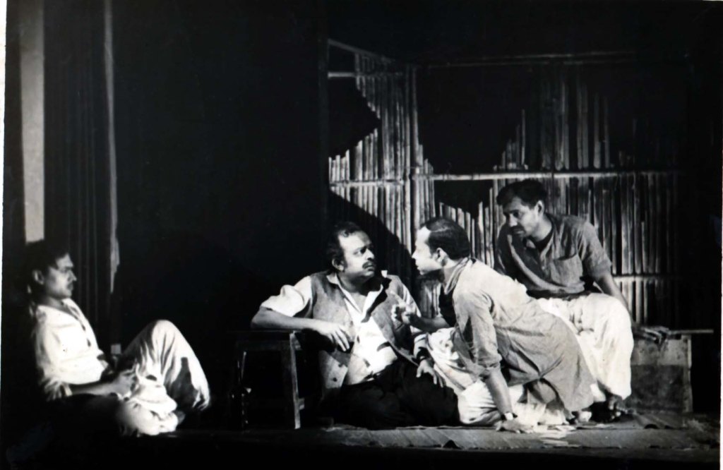 বরং কিছু কিছু জায়গায় দেখলাম ওরা বেশ নিজেরাই উপস্থিত বুদ্ধি খাটিয়ে কিছু মুস্কিল আসান করে দিলো। বিলায়েতী হুইস্কির বদলে আমরা বোতলে ভরে লাল চা নিয়ে এসেছিলাম। বোতল দেখে যাতে বোঝা না যায় জনি ওয়াকার বা অন্য কোন চেনা ব্র্যান্ড। খবরের কাগজে নাটকের ছবি বেরোবে, সেখানে জনি ওয়াকারের বোতল দেখলে তো নির্ঘাত জেল এবং দেশ থেকে বহিস্কার। সাদামাটা কাঁচের বোতল জোগাড় করা হয়েছিল নাটকের জন্যে। তো যাই হোক, একটা সীনে কারুর হাতে লেগে কিছুটা চা গ্লাস থেকে চলকে তক্তপোষে পড়ে যায়। হিমাদ্রী দেখলাম smartly উঠে গামছা দিয়ে জায়গাটা মুছে পরিস্কার করে দিলো।