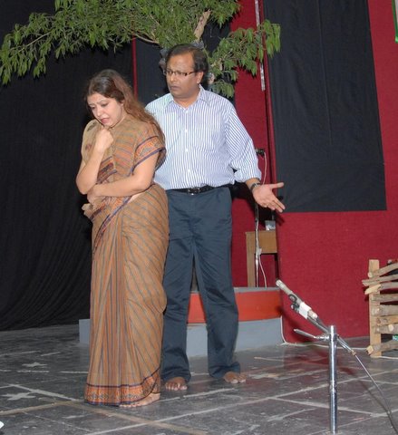 তো শো এর দিন (শুক্রবার) সকাল দশটা নাগাদ ইন্ডিয়ান স্কুলে গিয়ে দেখি পার্থ তার সাকরেদদের নিয়ে কাজে লেগে গেছে। কাজের সরঞ্জাম সব পার্থ যোগাড় করে নিয়ে এসেছে। থার্ম্মোকোল, পেন্ট, ব্রাশ, কাঁচি, ছুরি, দড়ি, তার, সুতো, আঠা, পেরেক, হাতুড়ি ইত্যাদি আরও যা যা কিছু দরকার। এছাড়া নানা রকম prop যেমন মা কালীর ছবি, গামছা, লন্ঠন চিতা জ্বালাবার জন্যে Electronic fire এই সব।