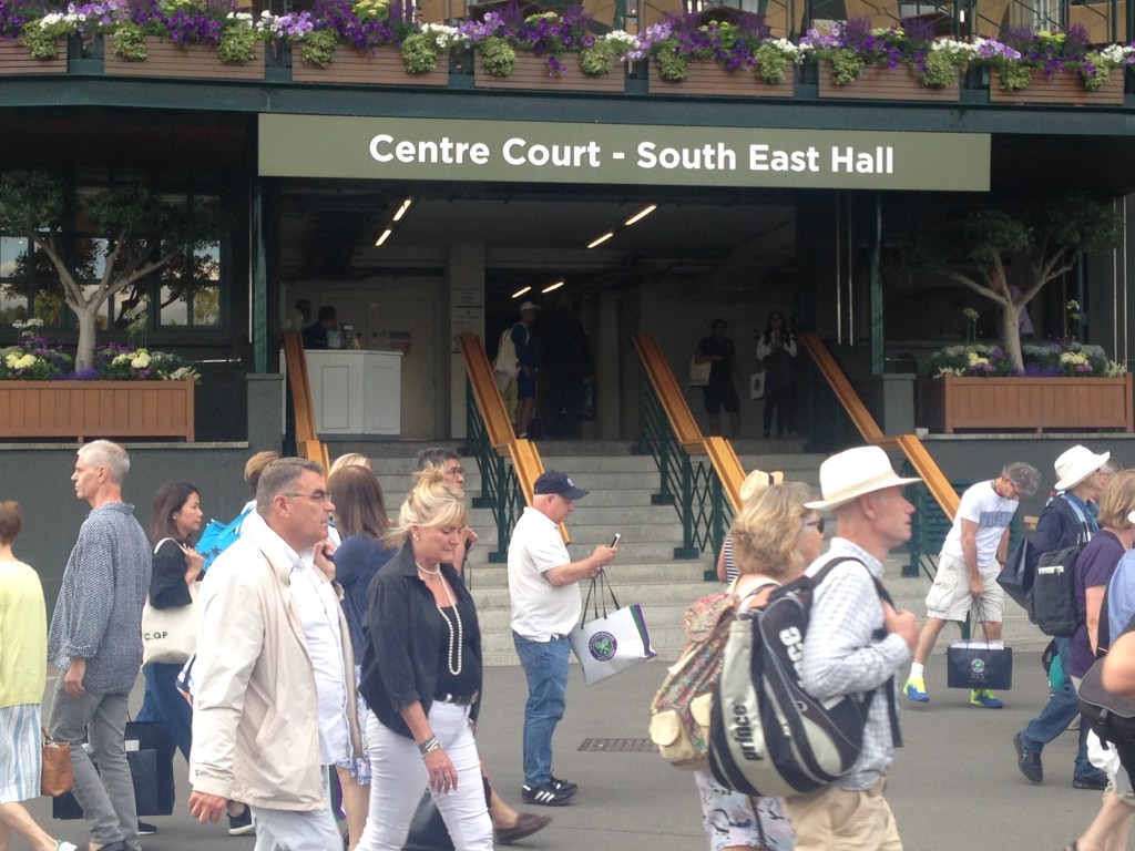 সব কোর্ট মিলিয়ে শুনেছি এখানকার capacity বড় জোর চল্লিশ হাজার, Wembley বা আমাদের Eden Gardens এর তুলনায় কিছুই না। এদের মধ্যে একটা বড় অংশের কোর্টে যাবার টিকিট নেই, তারা এসেছে  সেখানকার উৎসবের পরিবেশটা উপভোগ করতে। প্রত্যেকে খুব সাজগোজ করে এসেছে, ছেলেদের মাথায় ফেল্টের হ্যাট, হাতে চুরুট, মেয়েদের চোখে বাহারী  সানগ্লাস।