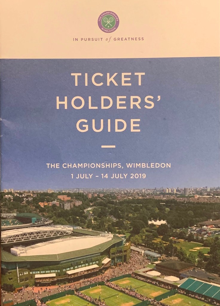 টিকিটের সাথে Ticket holder’s guide নামে একটা booklet এসেছে, তাতে সব কিছু পুঙ্খানুপুঙ্খ ভাবে লেখা, সেখানে সব কোর্টের ম্যাপ আঁকা আছে, সেই ম্যাপ দেখে দেখে ভীড়ের মধ্যে গা ভাসিয়ে ঘুরে বেড়ালাম কিছুক্ষণ। সব মিলিয়ে আঠেরোটা কোর্ট, তার মধ্যে সেন্টার কোর্ট আর এক নম্বর কোর্টের ছাদ আছে, তাদের মাঝখানে চৌদ্দ থেকে সতেরো নম্বর কোর্ট সেখানে সাধারণ কাঠের গ্যালারী। আমাদের সাউথ ক্লাবের মতই। সব কোর্টেই খেলা চলছে, তবে বাইরে থেকে খেলা দেখার উপায় নেই। ঘাসে বল বাউন্স করার অবিরাম শব্দ ভেসে আসছে বাতাসে। সব গ্যালারী ই লোকে ভর্ত্তি।