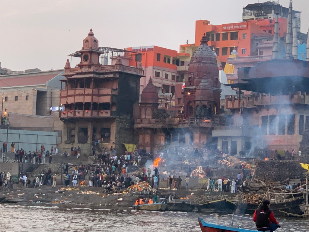 হরিশ্চন্দ্র আর মণিকর্ণিকা ঘাটে চিতাকাঠের স্তুপ রাখা। জ্বলন্ত চিতার ধোঁয়ায় নিঃশ্বাস কিছুটা বন্ধ হয়ে আসে। মৃতের আত্মীয়রা এবং প্রিয়জনেরা মুখ ম্লান করে পাশে দাঁড়িয়ে থাকে।