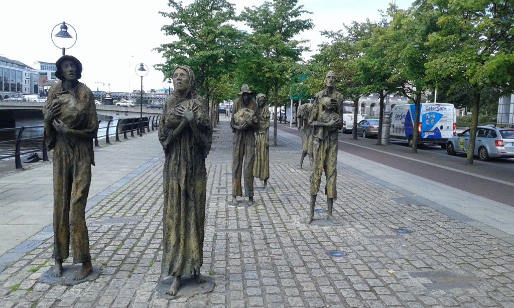 নদীর ধার দিয়ে একটু এগোলেই দেখা যায় নদীতে নোঙ্গর করে বাঁধা মাস্তুল তোলা এক বিশাল নৌকা তার পাশে এক নোটিসে লেখা ১৮৯০ সালে দুর্ভিক্ষের সময় প্রায় ১৫০০ লোক ১০০ মাইল হেঁটে Dublin harbor থেকে এই জাহাজে উঠে কানাডার Quebec গিয়েছিল। অনাহারে অর্দ্ধাহারে তাদের অনেকেই গন্তব্যে পৌঁছবার আগে সেই জাহাজে মারা যায়। এই হাঁটাপথের নাম দেওয়া হয়েছে National Famine way, আর জাহাজের ঠিক সামনে রাস্তার এক ধারে সেই সব বিপন্ন ক্ষুধার্ত মানুষদের কিছু sculpture সাজানো। কারুর হাতে কিছু থালা বাসন, কারুর কাঁধে ব্যাগ, কারুর গলায় শিশু ঝুলে আছে।