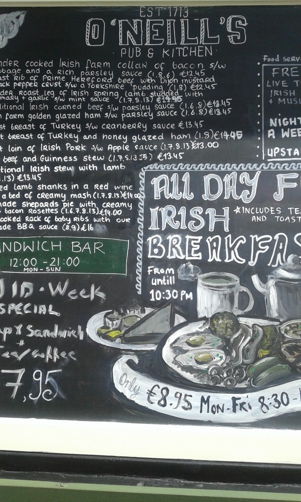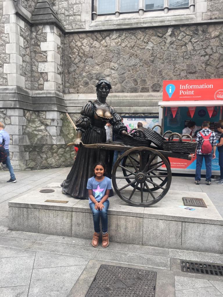 কাছেই Grafton Street, সেখানে Molly Malone এর statue র সামনে গীটার বাজিয়ে গান গাইছে একটি যুবক, তার পাশে ভীড় জমে গেছে, বেশ একটা উৎসবের পরিবেশ। আমরা উল্টোদিকে M J Oneill’s নামে একটি আইরিশ পাবে লাঞ্চ খেতে ঢুকে পড়লাম। পাবের ভিতরে প্রচন্ড ভীড়, কোনমতে একটা জায়গা পাওয়া গেল।