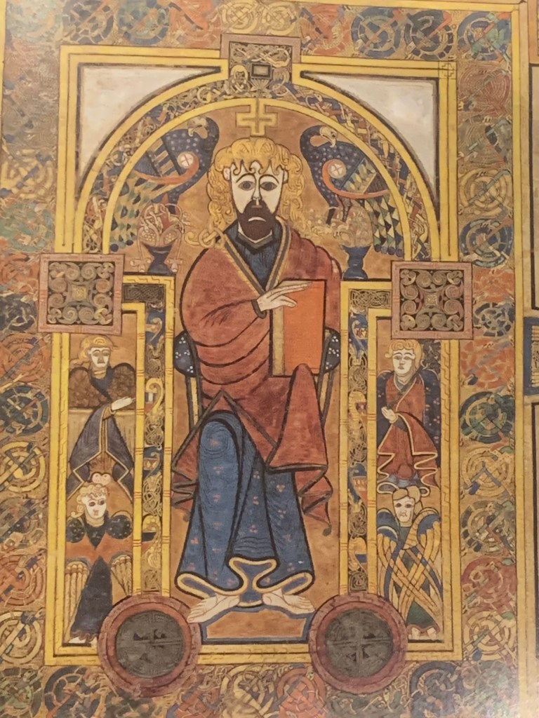 Book of Kells কে Medieval Europe এর early Christianity র এক অসাধারণ অসামান্য কাজ (“Ireland’s finest national treasure”) বলে ধরা হয়, অষ্টম শতাব্দী তে Irish Christian monk দের লেখা ল্যাটিন ভাষায় এই পুঁথির নিখুঁত calligraphy রংএর ব্যবহার আর শিল্পসুষমা দেখলে মুগ্ধ হতে হয়।