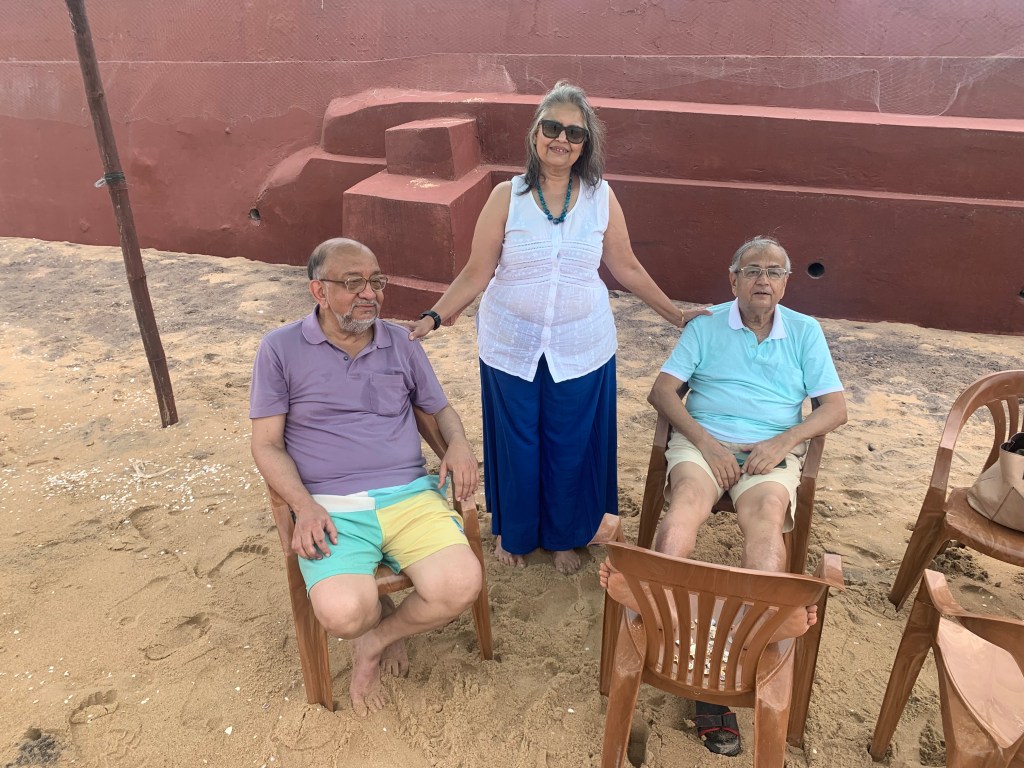 লাঞ্চের পরে আবার একটু বিশ্রাম সেরে আমরা সমুদ্রের ধারে চা আর ঝালমুড়ি নিয়ে বসে গেলাম। নানা আলোচনার মধ্যে ফেনার মুকুট পরা সমুদ্রের ঢেউয়ের ক্লান্তিহীন আসা যাওয়া দেখতে দেখতে পশ্চিমের আকাশ কমলা আর লাল রং এ ভরিয়ে সুর্য্যাস্ত হল, তারপর নেমে এলো অন্ধকার।